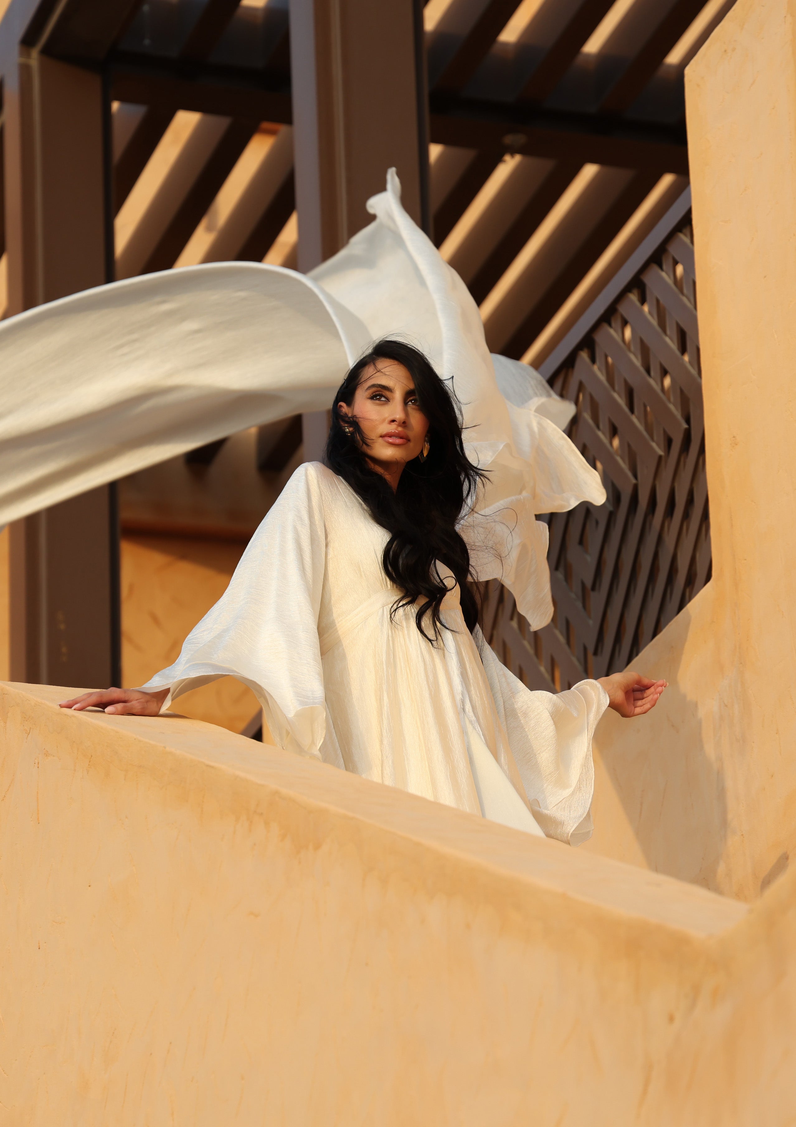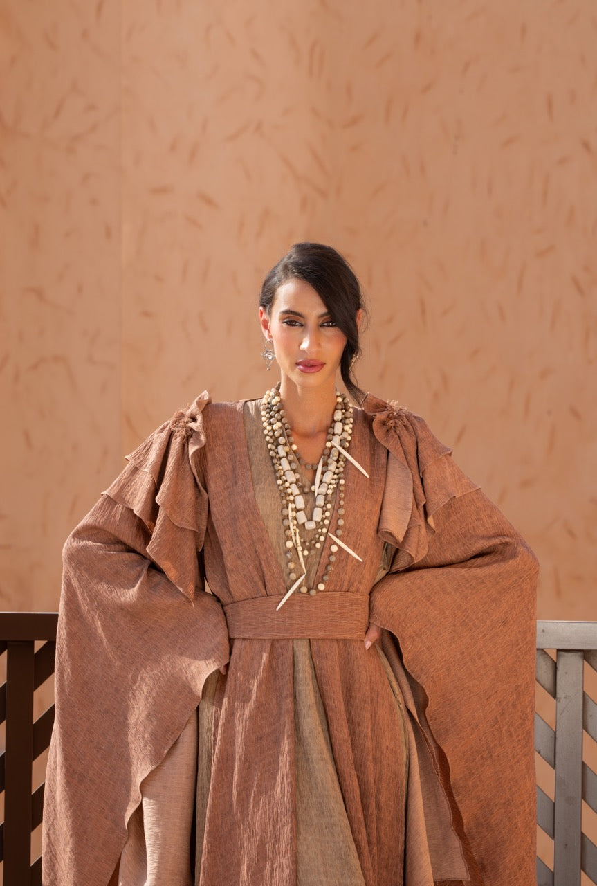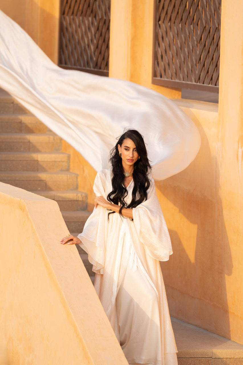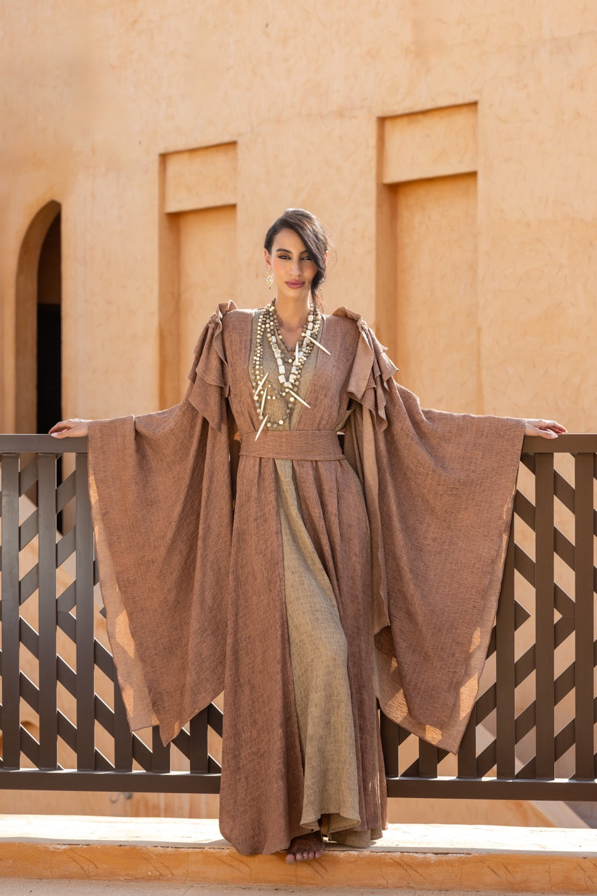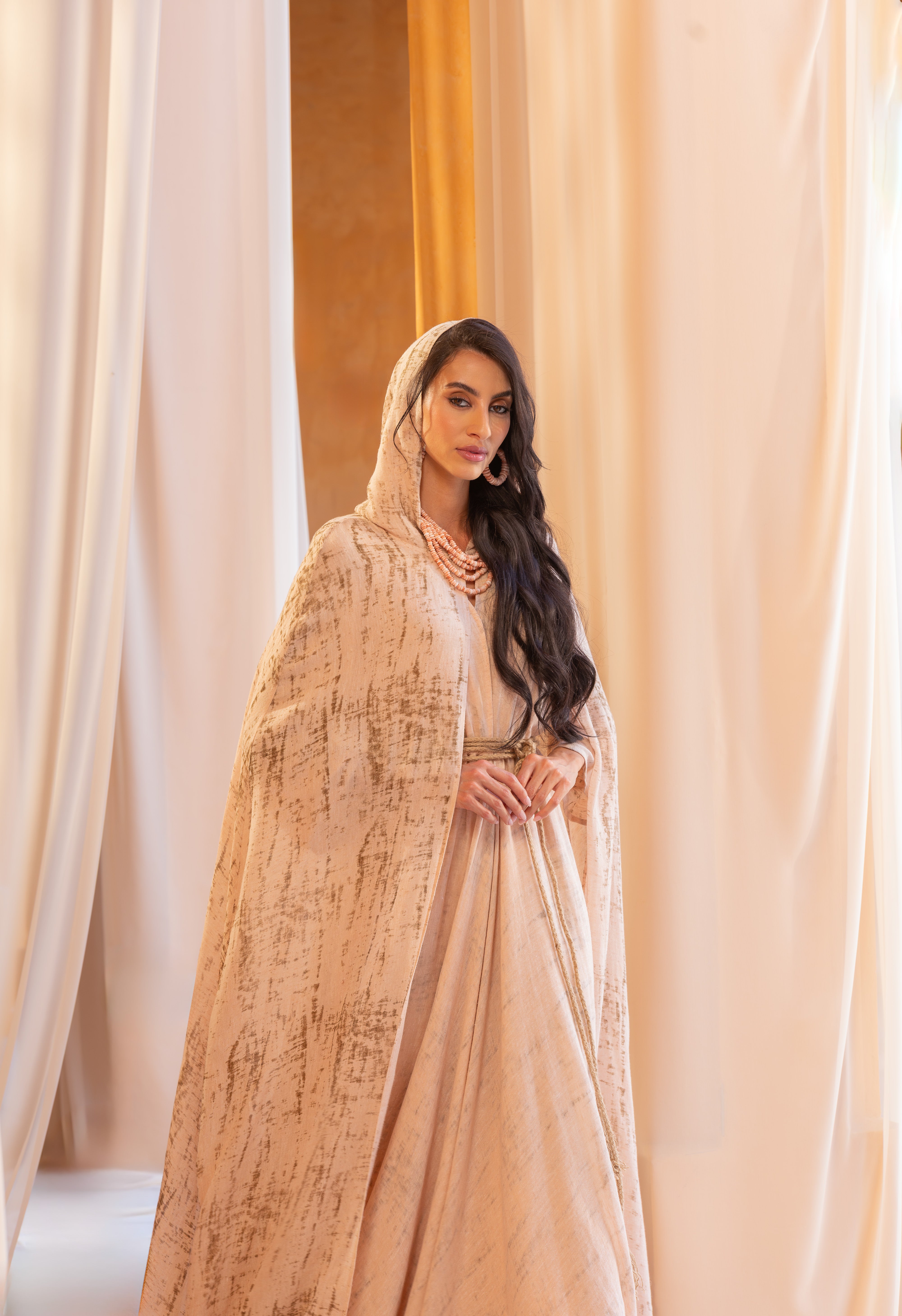 From the sands of forgotten kingdoms, she rises – the embodiment of ancient queens, whose memories echo through the ages, weaving gold and fire into the fabric of us.